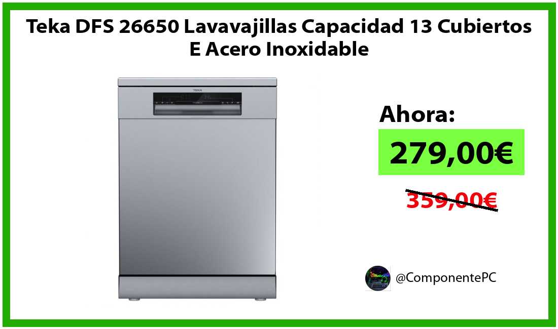 πΉTeka DFS 26650 Lavavajillas Capacidad 13 Cubiertos E Acero Inoxidable solo 279,00β¬βοΈβ‘οΈ(PVP: 359,00β¬)