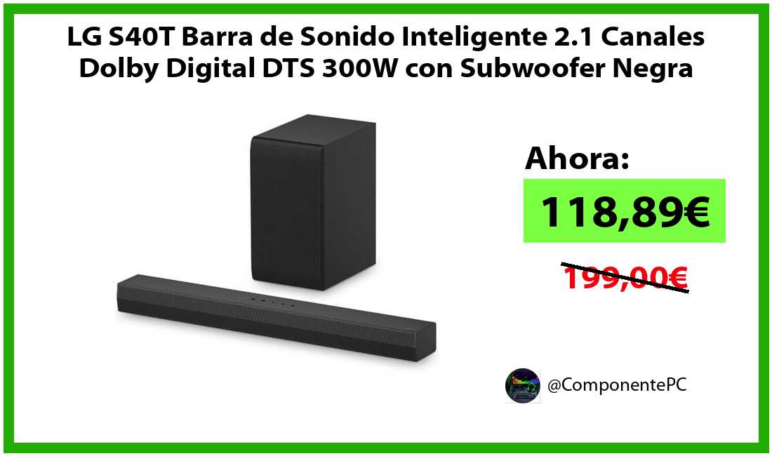 πΉLG S40T Barra de Sonido Inteligente 2.1 Canales Dolby Digital DTS 300W con Subwoofer Negra solo 118,89β¬βοΈβ‘οΈ(PVP: 199,00β¬)