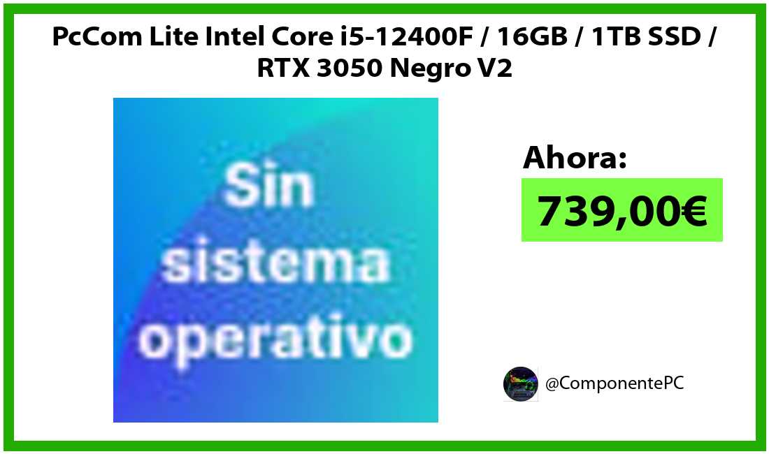 πΉPcCom Lite Intel Core i5-12400F / 16GB / 1TB SSD / RTX 3050 Negro V2 solo 739,00β¬βοΈβ‘οΈ
