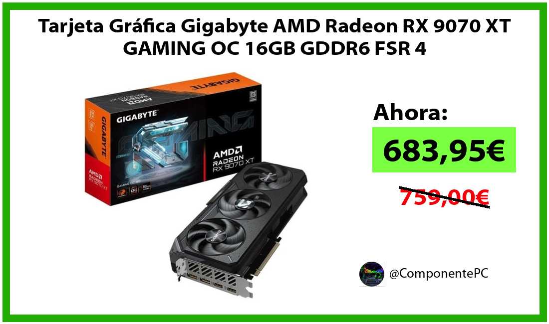 πΉTarjeta GrΓ‘fica Gigabyte AMD Radeon RX 9070 XT GAMING OC 16GB GDDR6 FSR 4 solo 683,95β¬βοΈβ‘οΈ(PVP: 759,00β¬)