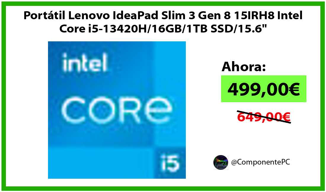 πΉPortΓ‘til Lenovo IdeaPad Slim 3 Gen 8 15IRH8 Intel Core i5-13420H/16GB/1TB SSD/15.6" solo 499,00β¬βοΈβ‘οΈ(PVP: 649,00β¬)