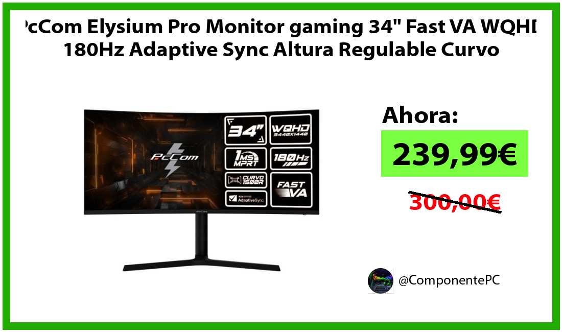 🔹PcCom Elysium Pro Monitor gaming 34" Fast VA WQHD 180Hz Adaptive Sync Altura Regulable Curvo solo 239,99€❗️⚡️(PVP: 300,00€)