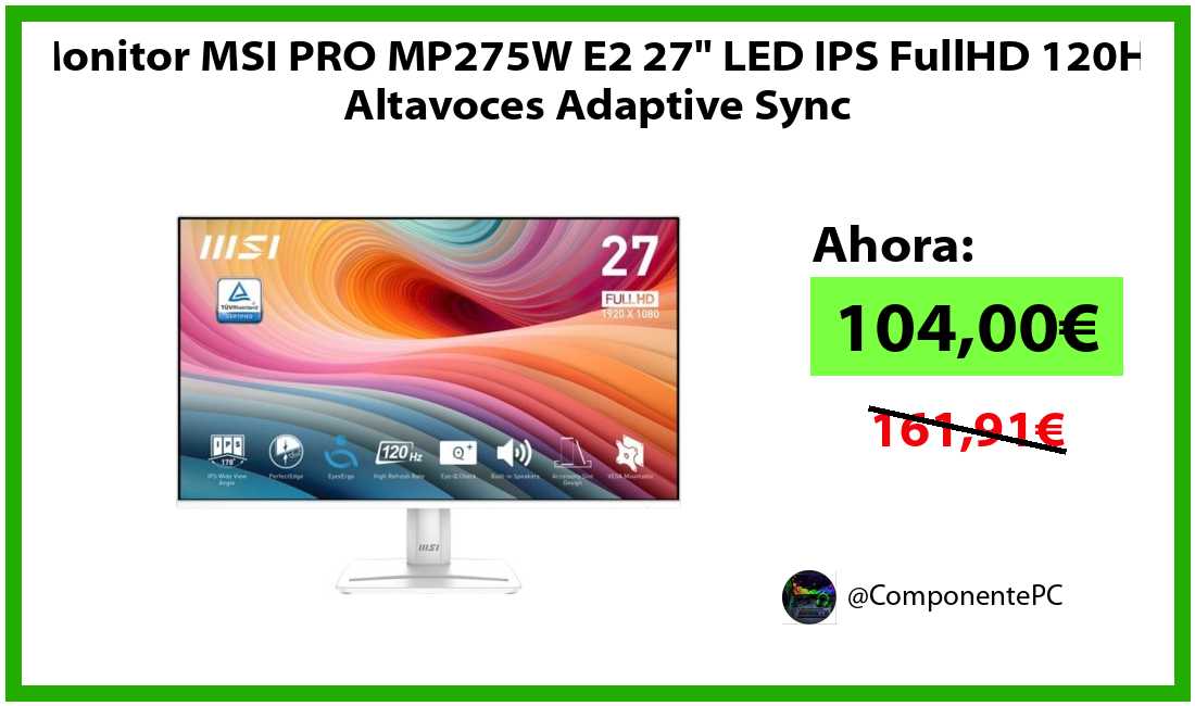 🔹Monitor MSI PRO MP275W E2 27" LED IPS FullHD 120Hz Altavoces Adaptive Sync solo 104,00€❗️⚡️