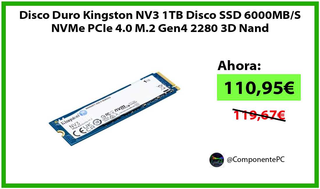 🔹Disco Duro Kingston NV3 1TB Disco SSD 6000MB/S NVMe PCIe 4.0 M.2 Gen4 2280 3D Nand solo 110,95€❗️⚡️(PVP: 119,67€)