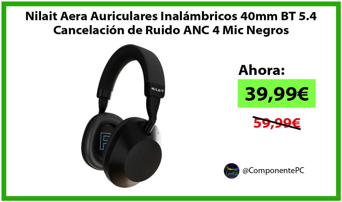 🔹Nilait Aera Auriculares Inalámbricos 40mm BT 5.4 Cancelación de Ruido ANC 4 Mic Negros solo 39,99€❗️⚡️
