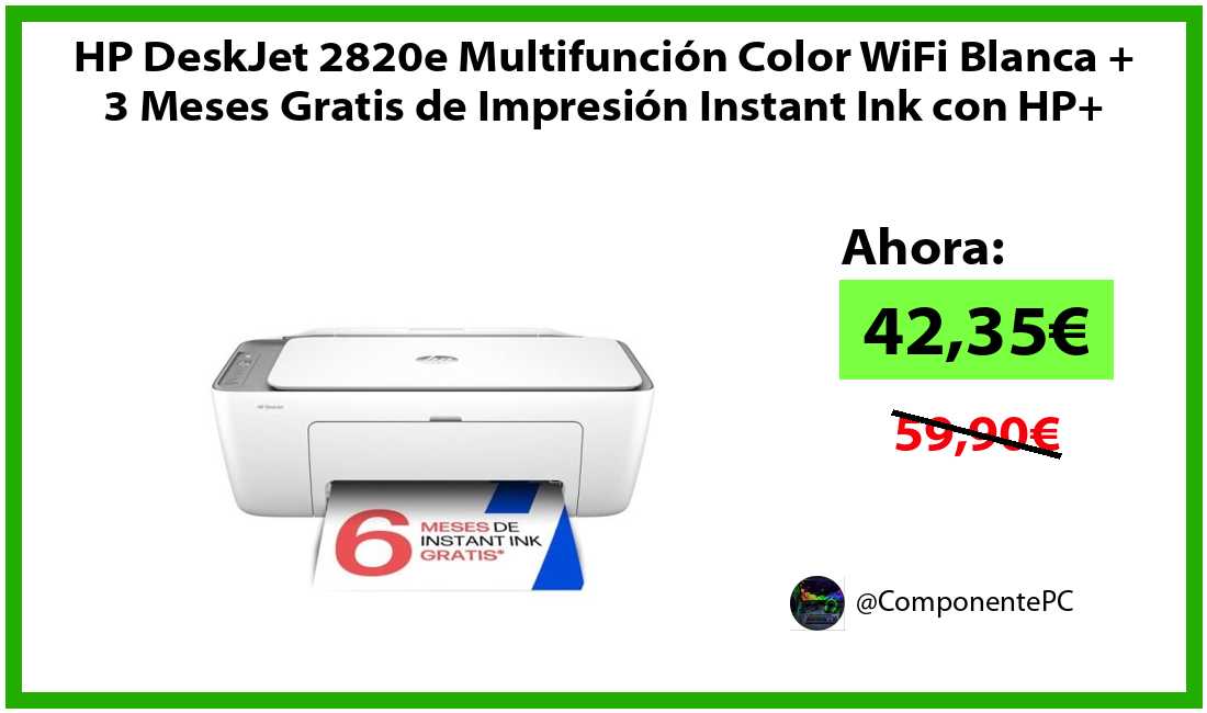 🔹HP DeskJet 2820e Multifunción Color WiFi Blanca + 3 Meses Gratis de Impresión Instant Ink con HP+ solo 42,35€❗️⚡️