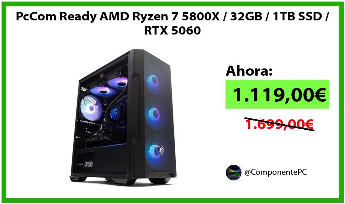 🔹PcCom Ready AMD Ryzen 7 5800X / 32GB / 1TB SSD / RTX 5060 solo 1.119,00€❗️⚡️(PVP: 1.699,00€)