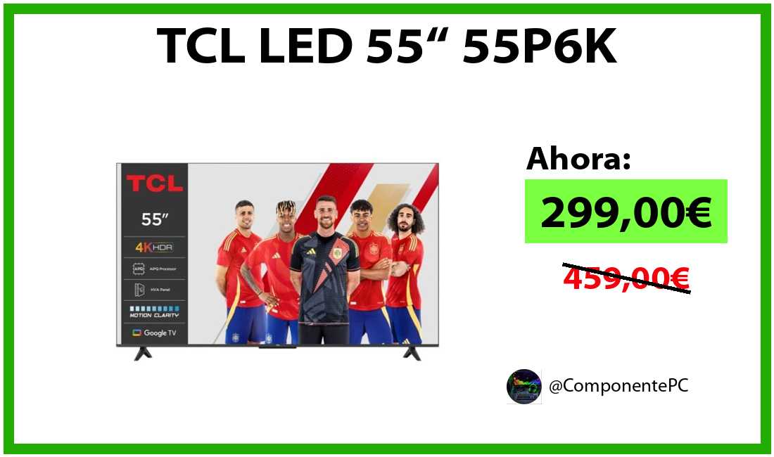 πΉTCL LED 55β 55P6K solo 299,00β¬βοΈβ‘οΈ(PVP: 459,00β¬)