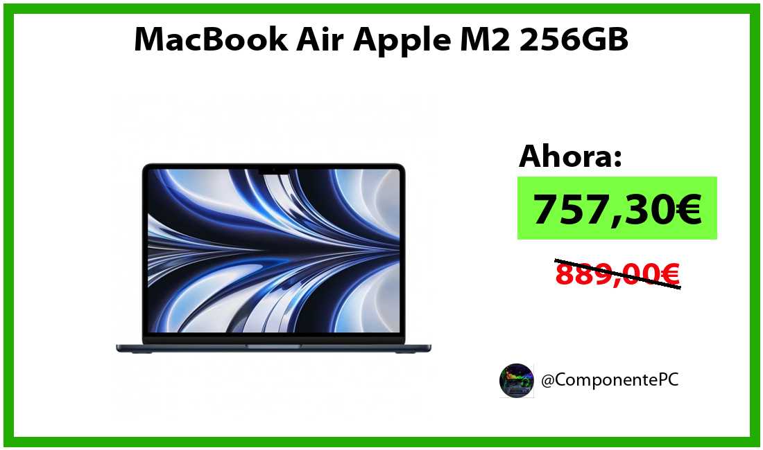 πΉMacBook Air Apple M2 256GB solo 757,30β¬βοΈβ‘οΈ(PVP: 889,00β¬)