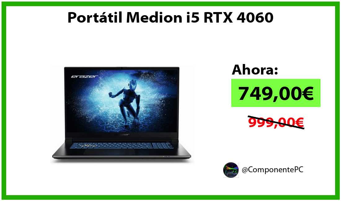 🔹Portátil Medion i5 RTX 4060 solo 749,00€❗️⚡️(PVP: 999,00€)