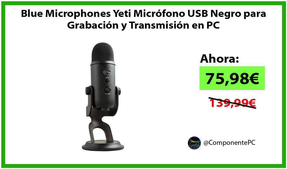 🔹Blue Microphones Yeti Micrófono USB Negro para Grabación y Transmisión en PC solo 75,98€❗️⚡️