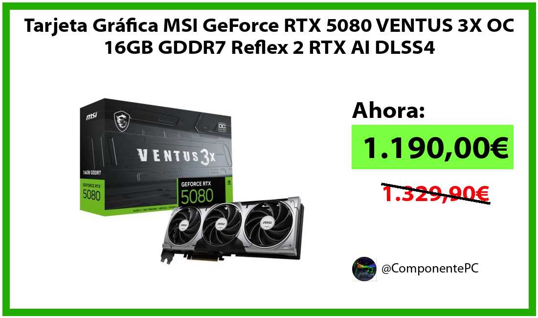 🔹Tarjeta Gráfica MSI GeForce RTX 5080 VENTUS 3X OC 16GB GDDR7 Reflex 2 RTX AI DLSS4 solo 1.190,00€❗️⚡️(PVP: 1.329,90€)