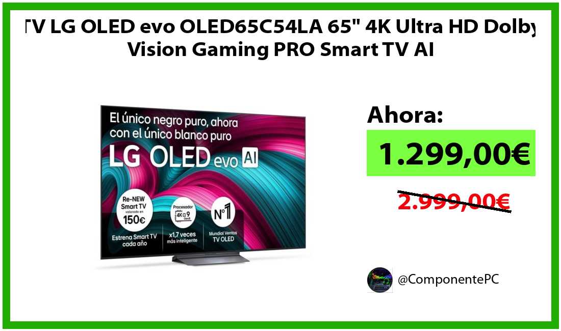 🔹TV LG OLED evo OLED65C54LA 65" 4K Ultra HD Dolby Vision Gaming PRO Smart TV AI solo 1.299,00€❗️⚡️(PVP: 2.999,00€)