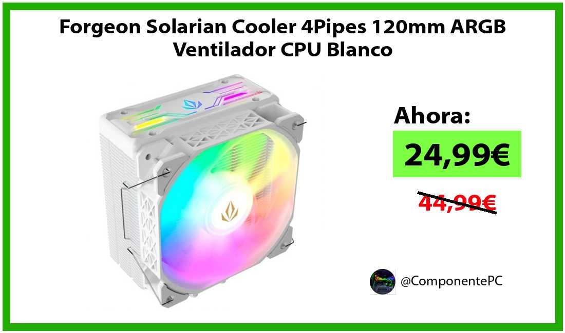 🔹Forgeon Solarian Cooler 4Pipes 120mm ARGB Ventilador CPU Blanco solo 24,99€❗️⚡️(PVP: 44,99€)