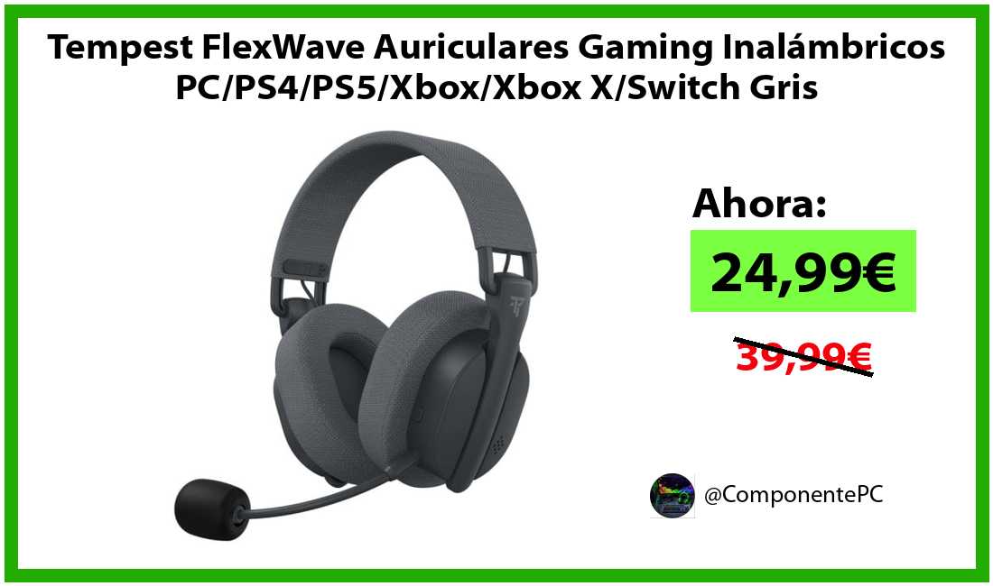 πΉTempest FlexWave Auriculares Gaming InalΓ‘mbricos PC/PS4/PS5/Xbox/Xbox X/Switch Gris solo 24,99β¬βοΈβ‘οΈ(PVP: 39,99β¬)