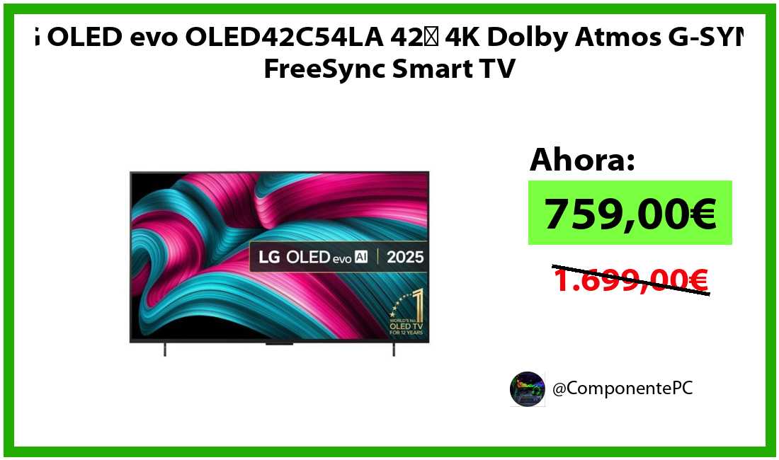 🔹LG OLED evo OLED42C54LA 42″ 4K Dolby Atmos G-SYNC FreeSync Smart TV solo 759,00€❗️⚡️(PVP: 1.699,00€)