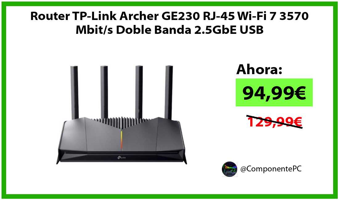 🔹Router TP-Link Archer GE230 RJ-45 Wi-Fi 7 3570 Mbit/s Doble Banda 2.5GbE USB solo 94,99€❗️⚡️(PVP: 129,99€)