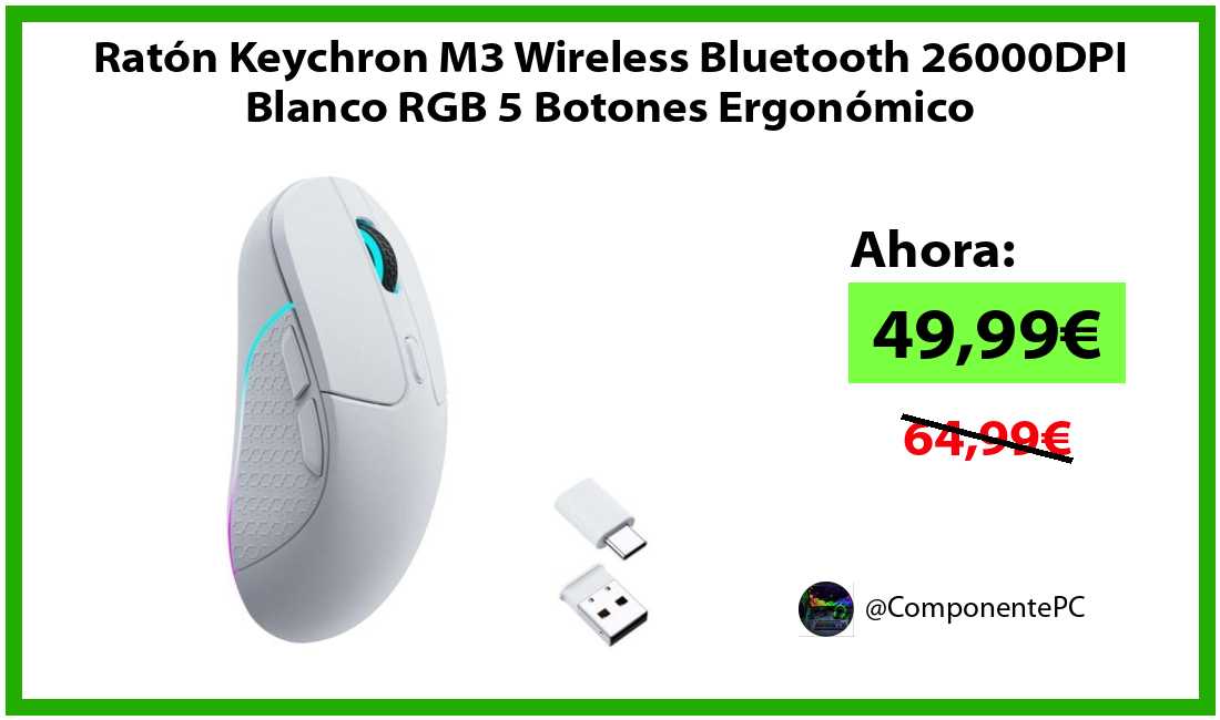 🔹Ratón Keychron M3 Wireless Bluetooth 26000DPI Blanco RGB 5 Botones Ergonómico solo 49,99€❗️⚡️