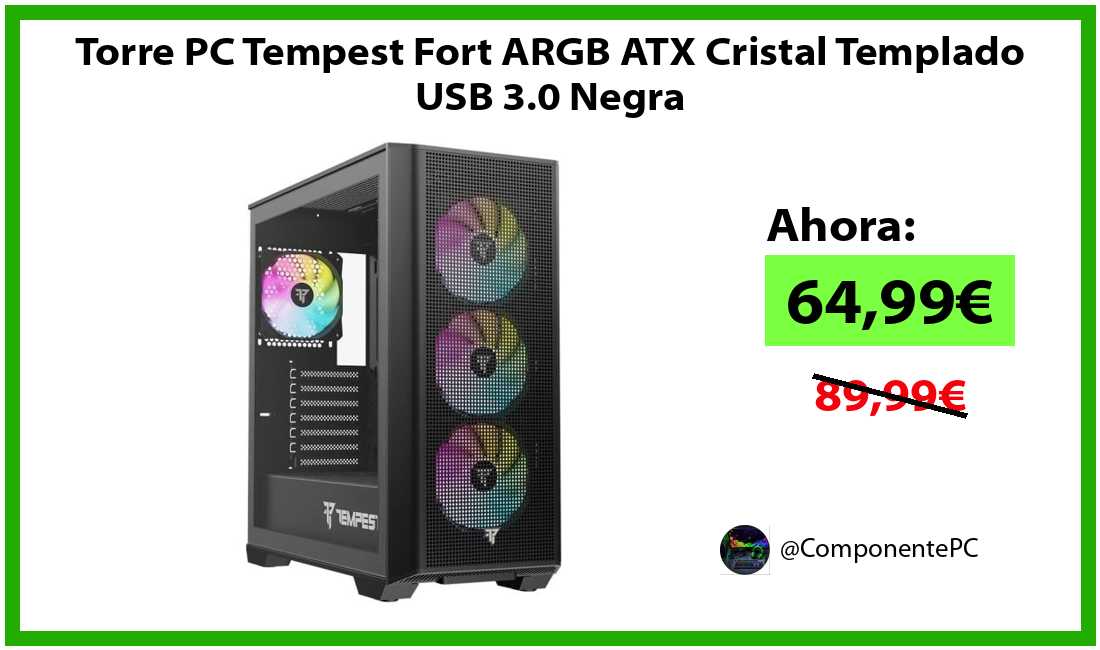 🔹Torre PC Tempest Fort ARGB ATX Cristal Templado USB 3.0 Negra solo 64,99€❗️⚡️(PVP: 89,99€)