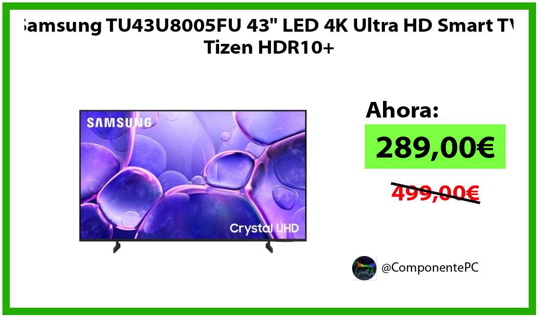 🔹Samsung TU43U8005FU 43" LED 4K Ultra HD Smart TV Tizen HDR10+ solo 289,00€❗️⚡️(PVP: 499,00€)