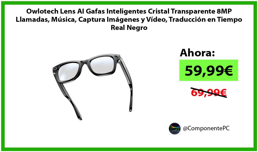 🔹Owlotech Lens AI Gafas Inteligentes Cristal Transparente 8MP Llamadas, Música, Captura Imágenes y Vídeo, Traducción en Tiempo Real Negro solo 59,99€❗️⚡️