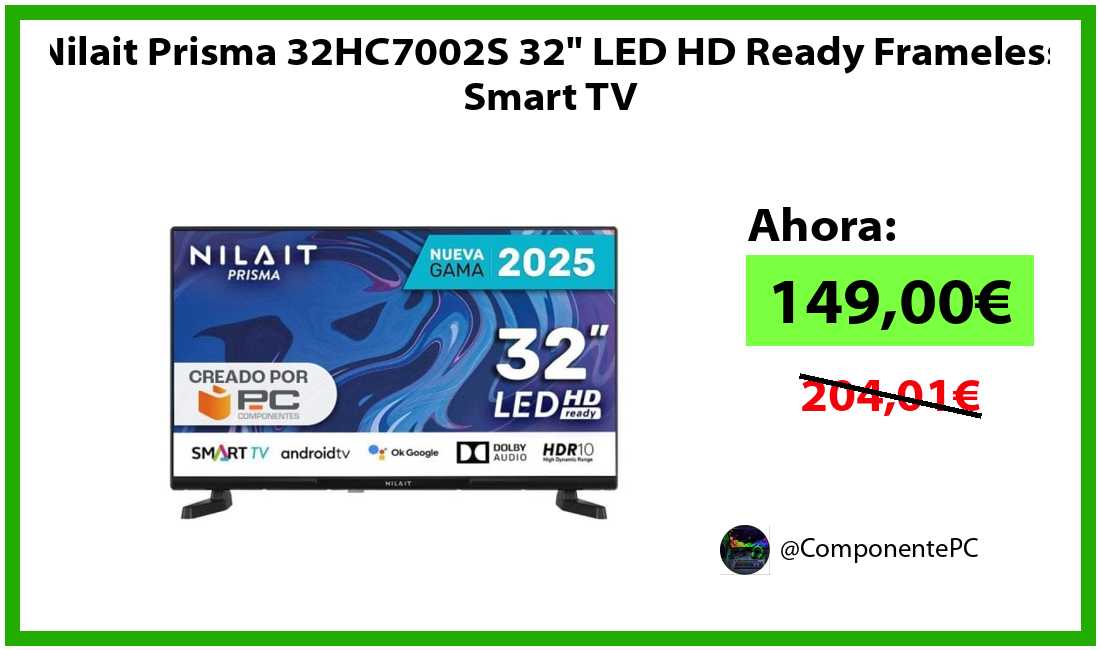 🔹Nilait Prisma 32HC7002S 32" LED HD Ready Frameless Smart TV solo 149,00€❗️⚡️(PVP: 204,01€)