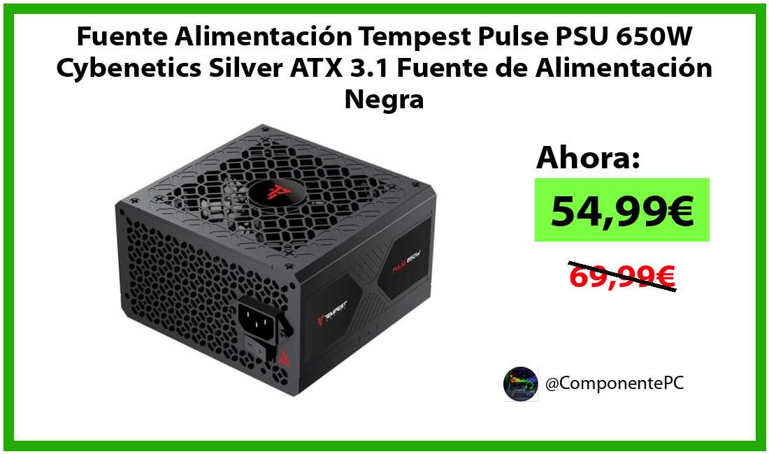 🔹Fuente Alimentación Tempest Pulse PSU 650W Cybenetics Silver ATX 3.1 Fuente de Alimentación Negra solo 54,99€❗️⚡️
