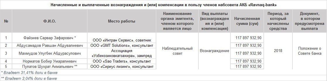 Кроме того, в сущфакте опубликованы начисленные вознаграждения членам набсовета банка по итогам 2018 года [см фото].