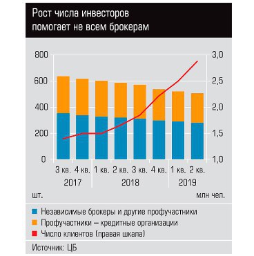 Однако банки [профучастники — кредитные организации, ПКО] уже опережают независимых брокеров на этом рынке: доля банков составляет 65% по общему количеству клиентов и 56% — по числу активных. И, похоже, независимым брокерам, которые безраздельно правили на фондовом рынке в 2000-е, будет всё сложнее отстаивать свои позиции на нём и переваривать растущий поток новых инвесторов.