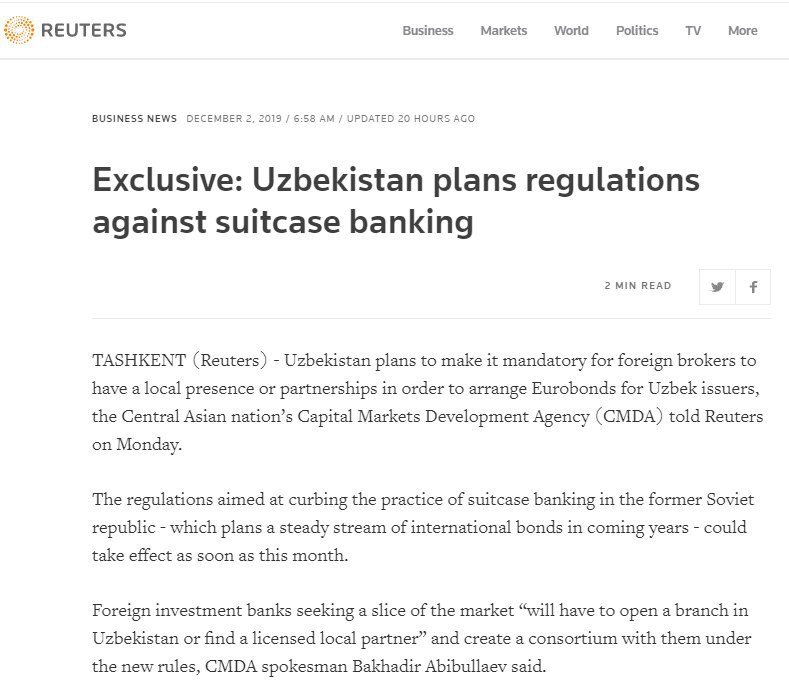 ➖проект приказа (постановления) об установлении особого порядка размещения и обращения ценных бумаг вне территории Республики Узбекистан (срок обсуждения завершился 4 декабря)