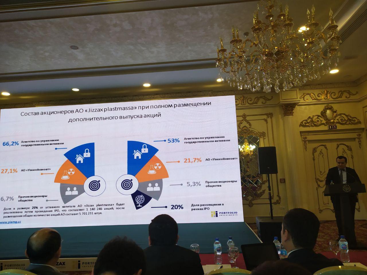 Напомним, что постановлением Президента от 03.04.2019г. №ПП-4265 была предусмотрена продажа до 25 % акций от уставного капитала АО «Жиззах пластмасса» на основе проведения на первоначальном этапе первичного публичного предложения (IPO).