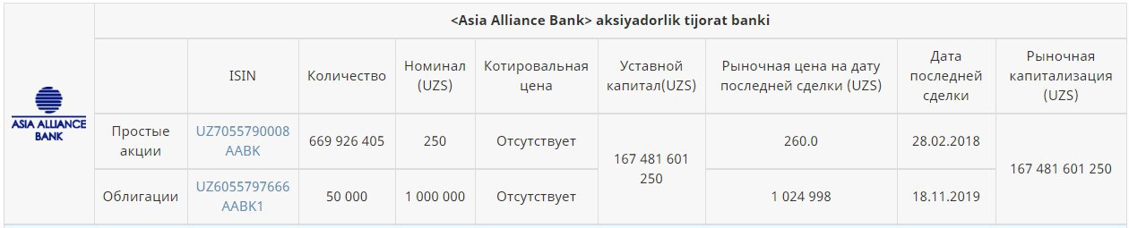 Также на этой неделе зарегистрированы и поставлены на учёт дополнительные выпуски акций АО «Узбекистон темир йуллари» и АО «Domestic Desire».