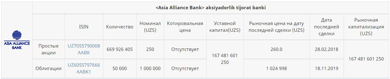 В листинге также находятся корпоративные облигации Банка [AABK1], последние биржевые сделки с которыми прошли 18.11.2019г.
