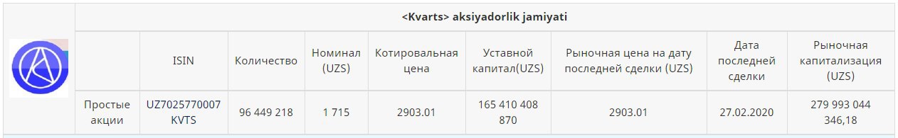 На этой неделе на учёт в Центральном депозитарии поставлен первичный выпуск акций АО «Узсувкурилиш» на 223,98 млрд. сумов, зарегистрированный 18 февраля Агентством по развитию рынка капитала [#].