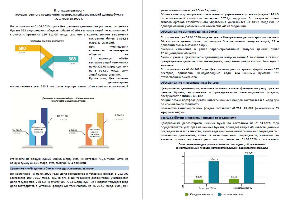 588 организаций в акционерной форме, с общим объёмом выпусков акций на 120,8 трлн. сум по номинальной стоимости.