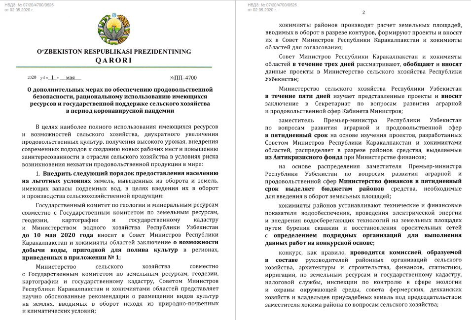 📜✍️ Постановлением Президента РУз. от 01.05.2020г.№ПП-4700: