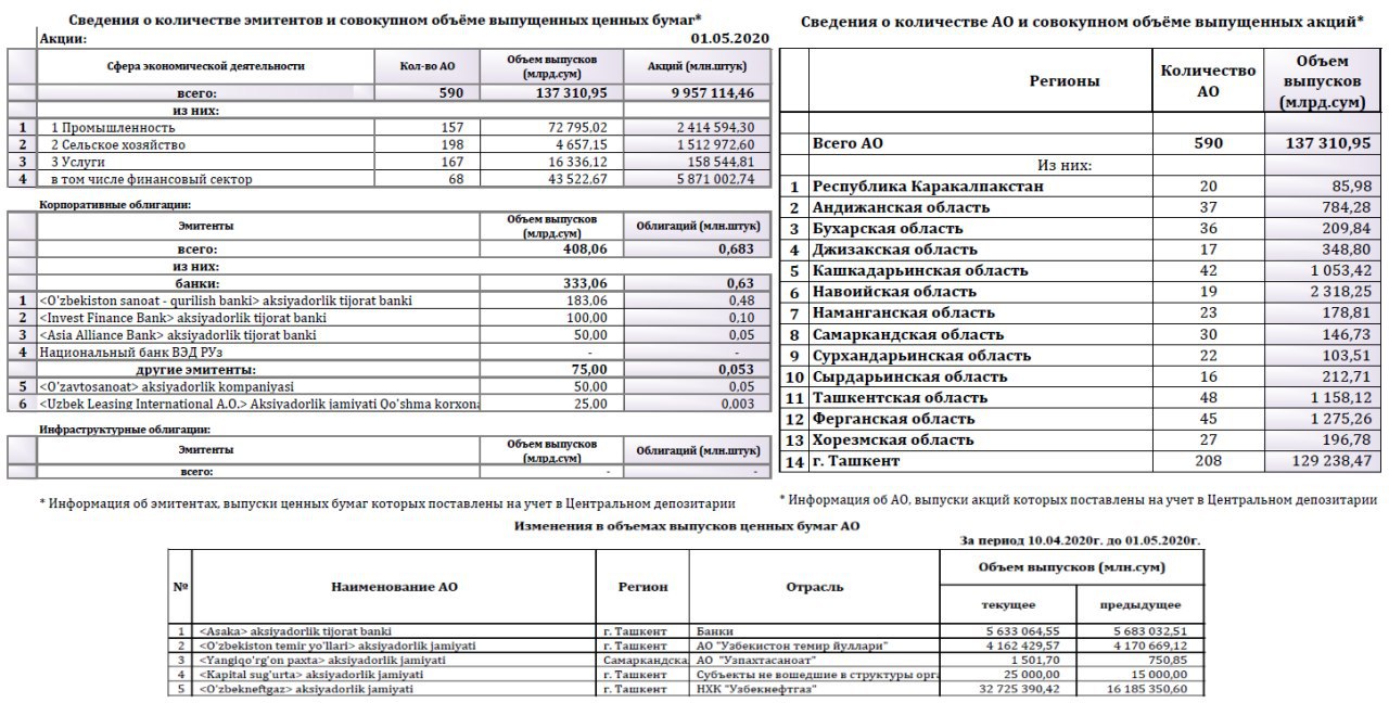 PS: 24 апреля был зарегистрирован дополнительный выпуск облигаций Капиталбанка на 50 млрд. сум, которого нет в данных ЦД по состоянию на 01.05.2020г.
