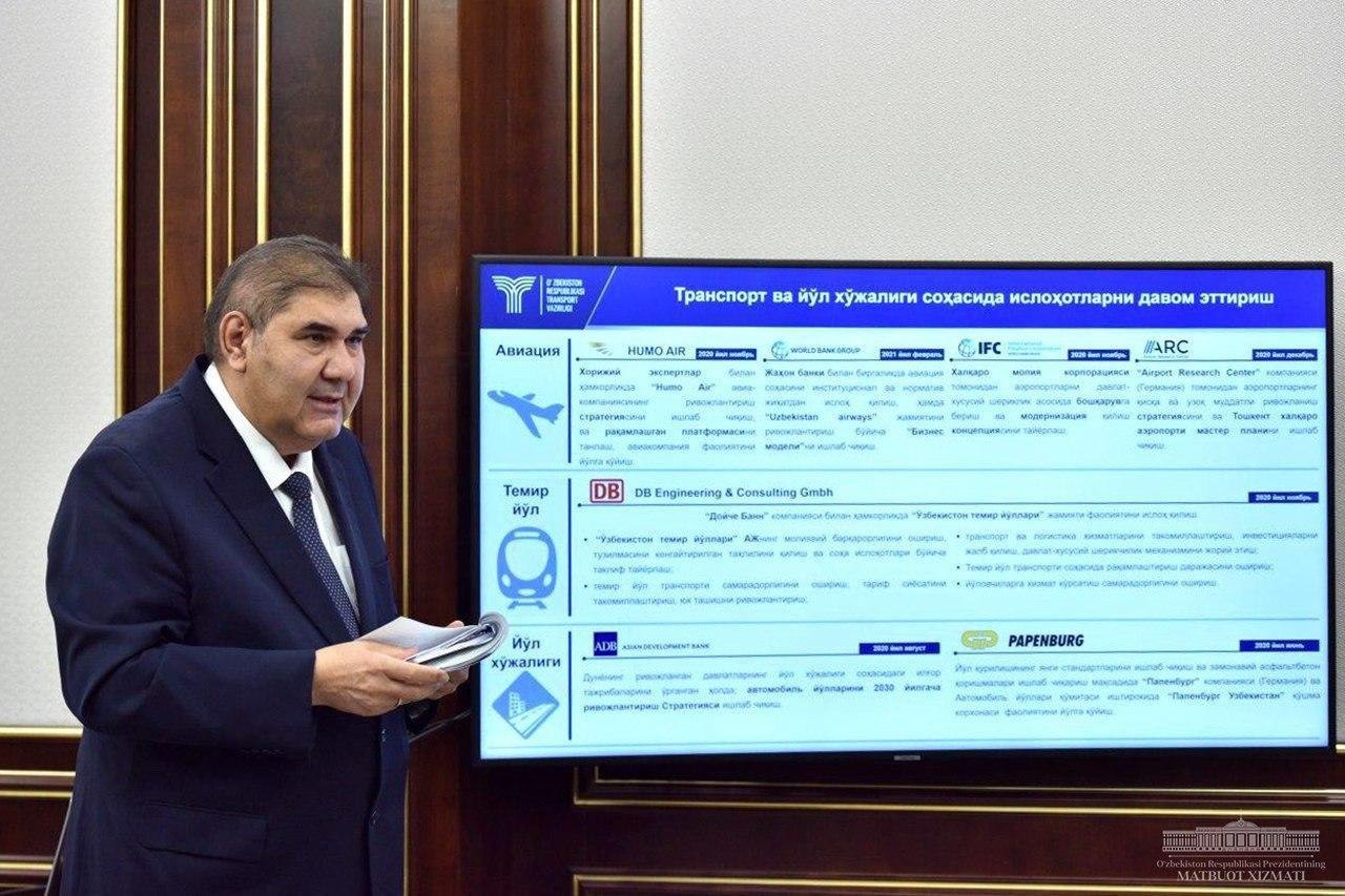 В связи с этим, акционерным обществам «Uzbekistan Airways» и «Uzbekistan Airports» предоставлена отсрочка по кредитам на $122 млн. и налоговые льготы на более чем 60 млрд. сумов. Из Антикризисного фонда предоставлены беспроцентные ссуды в размере $50 млн. в качестве оборотного капитала. Перед Министерством транспорта поставлена задача разработать бизнес-модель по преодолению последствий пандемии для данных обществ.