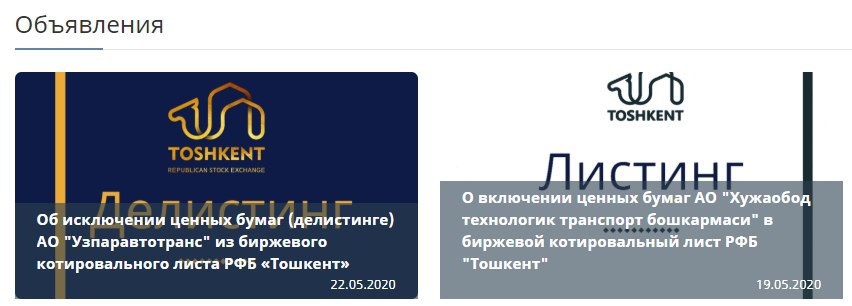 Напомним, что в июле 2019 года был произведён делистинг акций АО «Хужаобод технологик транспорт бошқармаси».