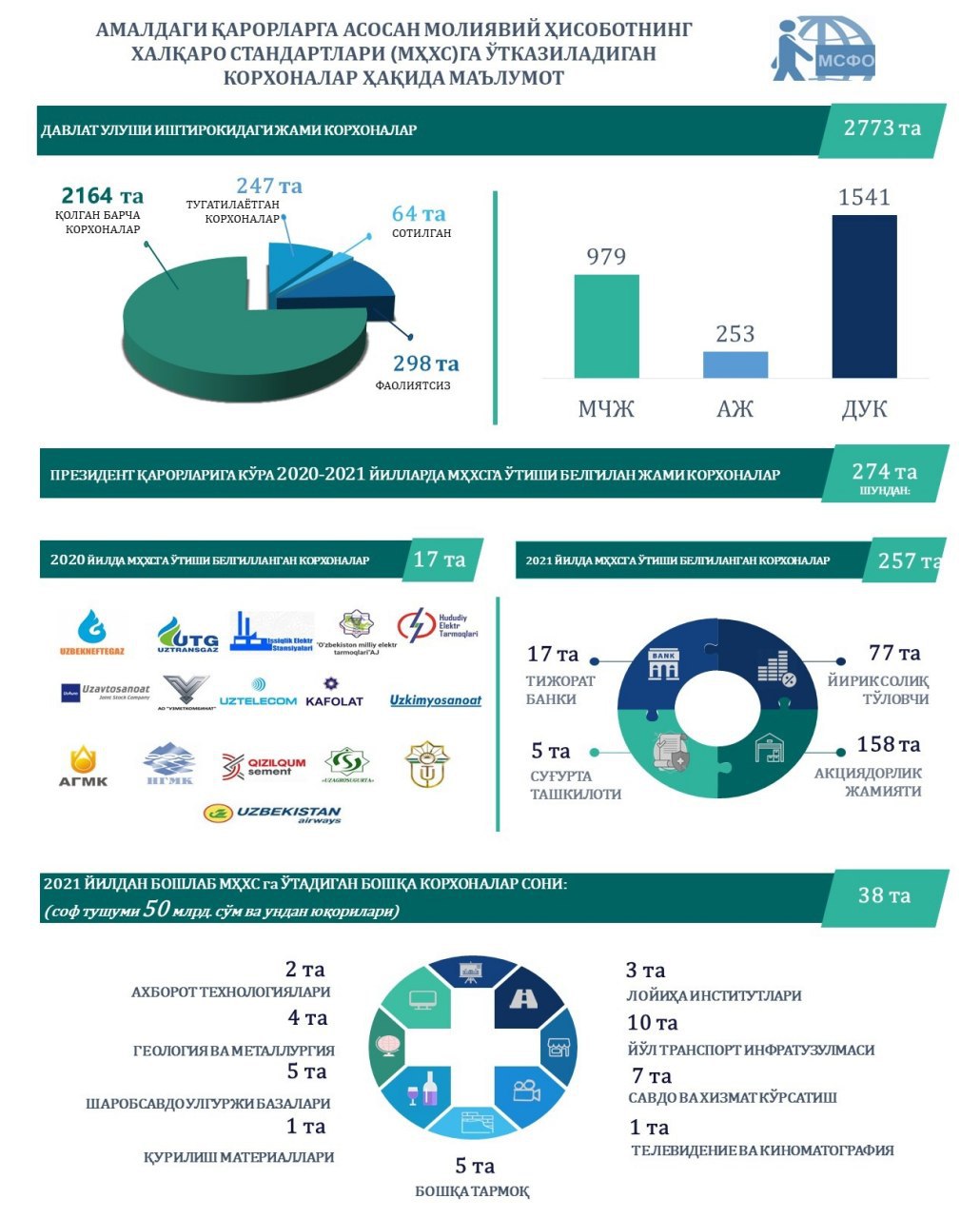 * Согласно данным, опубликованным 11 декабря 2019 года пресс-службой Президента, на тот момент в Узбекистане было 2819 госпредприятий [#], из которых 1573 - территориальные предприятия коммунальной сферы, строительства и обслуживания.