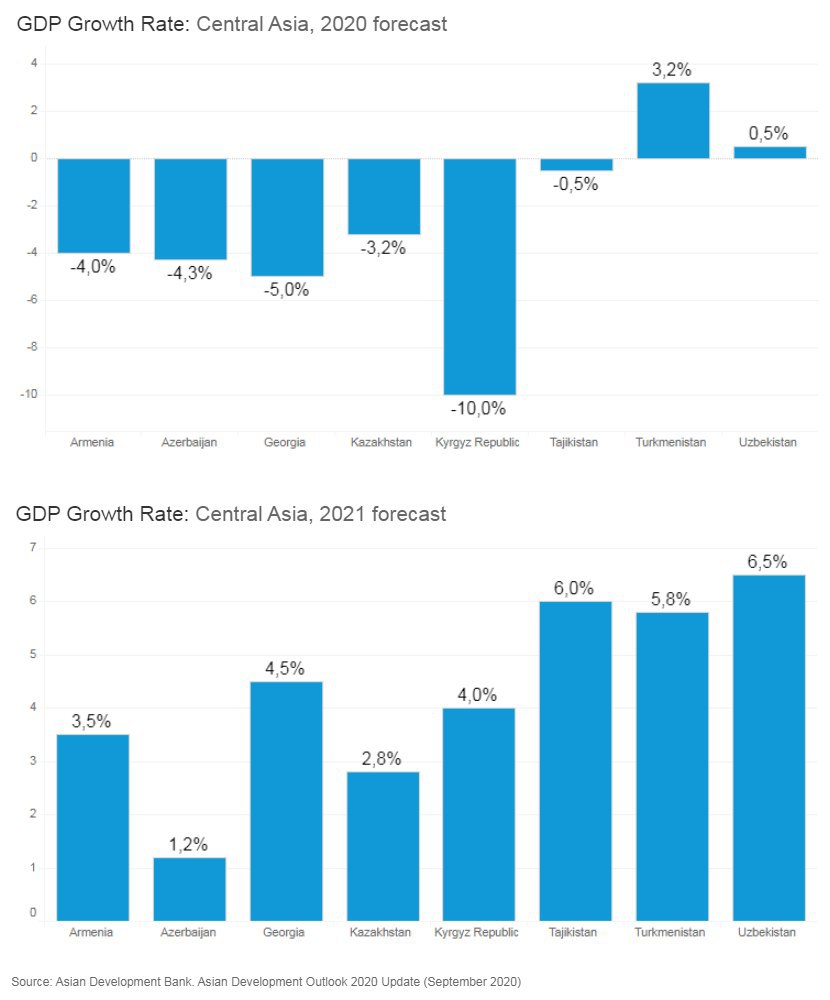 В обновлении Ежегодного экономического издания – Asian Development Outlook 2020, #АБР прогнозирует рост ВВП Узбекистана на уровне 0,5% в 2020 году, что является снижением по сравнению с прогнозом в июне в 1,5%.
