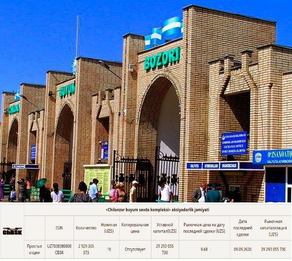 Согласно объявлению, предлагаемая цена продажи акций АО [CBSK], известного в народе как Ипподром базар, составляет 12,50 сум/шт при номинале 10 сум/шт.