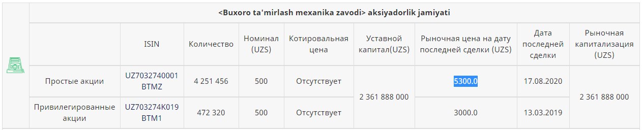 Также, спустя год после продажи госдоли в АО «Учкурган-ёг» (будучи акций в категории "Р"), простые акции [UCHY] данного АО допущены к биржевым торгам РФБ в категории "С".