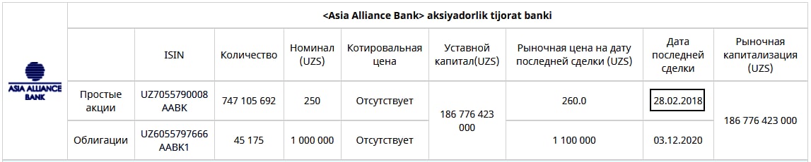 16 декабря государственный АКБ «Asia Alliance Bank» заключил со своим 100% дочерним предприятием - ООО «Absolut Leasing» договор на выдачу кредита в объёме 15 млрд. сум, без открытия кредитной линии [см также #].