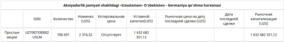 🔍 См сущфакты, годовые и квартальные отчёты АО «Uzsalaman»
