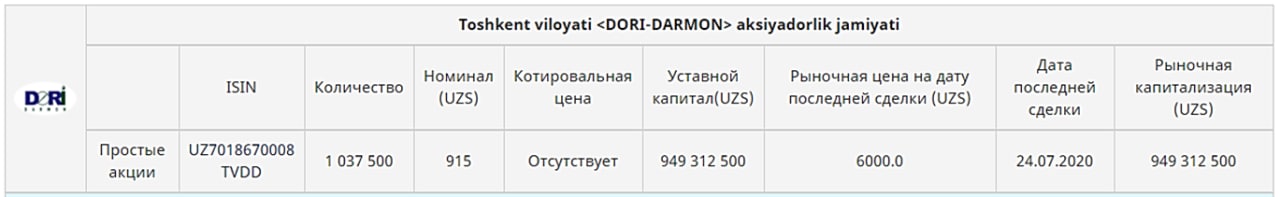 💊 На годовом общем собрании акционеров АО «Toshkent shahar dori-darmon», состоявшемся 09.12.2020г. (кворум – 73,61%), принято к сведению, что чистый убыток АО за 2019 год составил 3,22 млрд. сум. Работа исполнительного органа АО за прошлый год признана не…