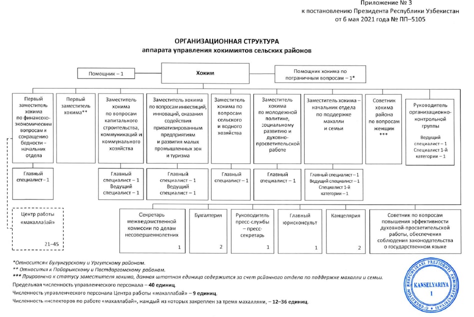 📜✍🏽 Постановлением Президента РУз. от 06.05.2021г. №ПП-5105 одобрено внедрение с 1 июня 2021 года в порядке эксперимента системы работы «махаллабай» в структуре хокимиятов районов (городов) Самаркандской области, предусматривающей:
