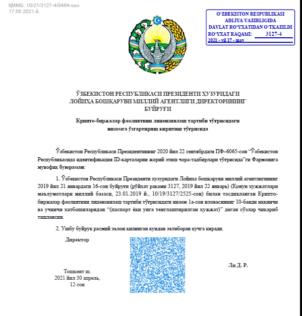 Соответствующие изменения внесены в пункт 10 Правил осуществления крипто-биржевой торговли, установленных Положением о порядке лицензирования деятельности крипто-бирж (рег. №3127 от 22.01.2019г.).