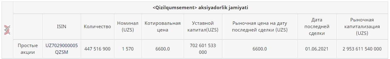 ➖52 сделки на 85,87 млн. сум с акциями #Кизилкумцемент [QZSM: 6500 сум/шт];