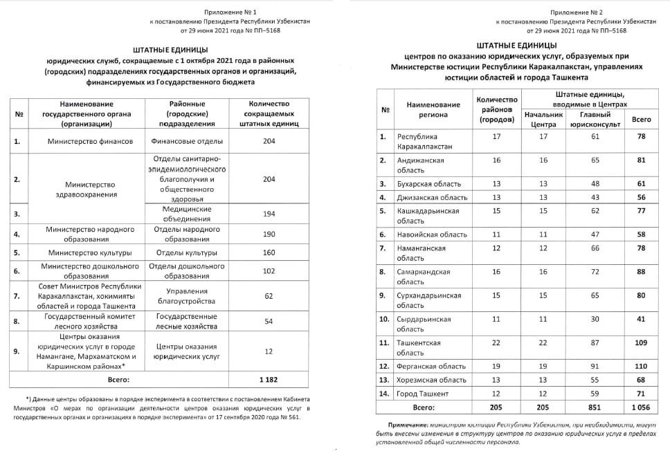 ➖сокращаются с 01.10.2021г. 1182 штатные единицы юрслужб в районных (городских) подразделениях отдельных госорганизаций, финансируемых из Госбюджета [на фото];